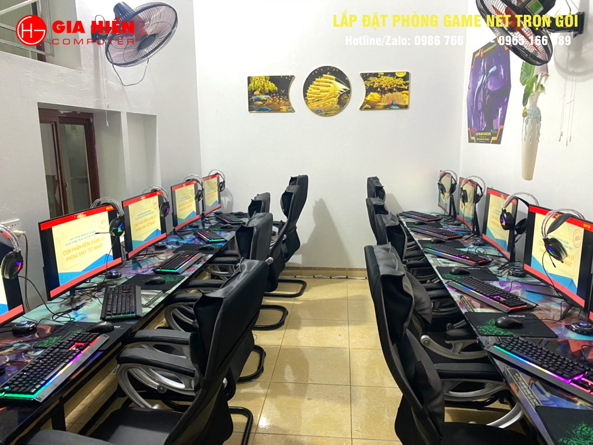 – Bờ Hồ Gaming lựa chọn cho mình mô hình Cyber game mini, là 1 trong những mô hình kinh doanh game net đang làm mưa làm gió trên thị trường phòng net hiện nay. Với thiết kế hiện đại, chuyên nghiệp phòng game sử dụng hệ thống bàn 1 cấp dán decal game mang đến không gian rộng rãi và an toàn cho game thủ, ghế được phòng game sử dụng là mẫu ghế G62 màu Đen để đồng bộ với không gian quán.