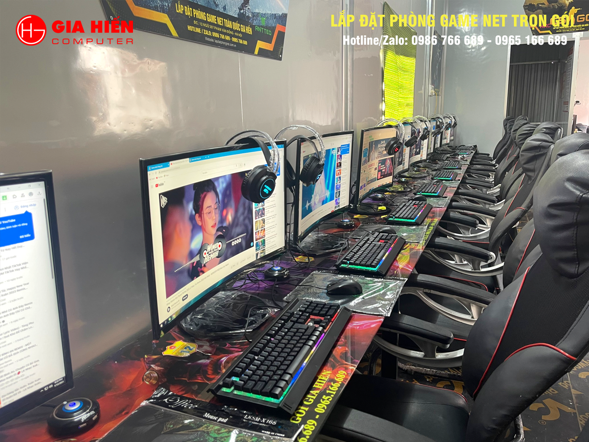 – BUI GIA GAMING & Billiards lựa chọn cho mình mô hình Cyber game mini, là 1 trong những mô hình kinh doanh game net đang làm mưa làm gió trên thị trường phòng net hiện nay. Với thiết kế hiện đại, chuyên nghiệp phòng game sử dụng hệ thống bàn 1 cấp mang đến không gian rộng rãi và an toàn cho game thủ, ghế được phòng game sử dụng là mẫu ghế G62 màu Đen.