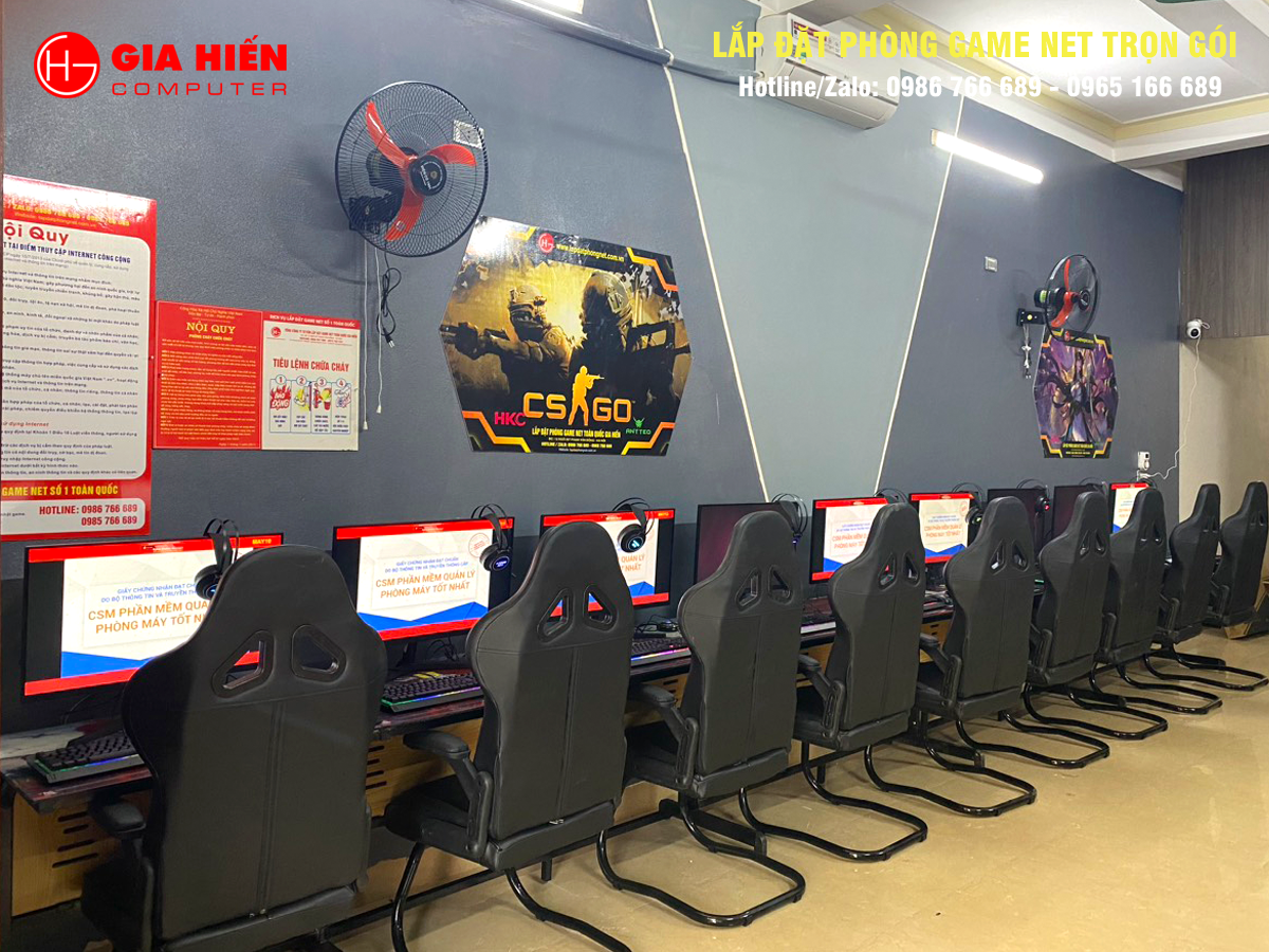 – Phòng sử dụng hệ thống điện 1 pha để tối ưu chi phí điện năng và đảm bảo sự ổn định cho phòng game, hệ thống làm mát của phòng game được bố trí sử dụng điều hòa và quạt trần tường đảm bảo không khí luôn mát mẻ nhất. Hệ thống chiếu sáng sử dụng đèn tuýp LED đem đến ánh sáng tốt nhất cho phòng game và game thủ.